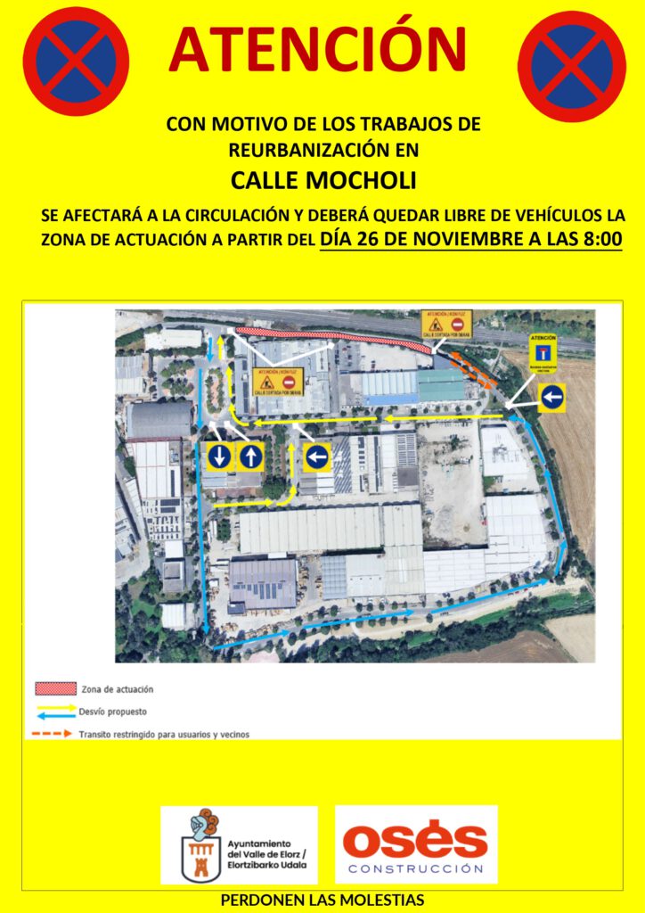 Trabajos de reurbanización en Calle Mocholí – nueva restricción 26/11/2025